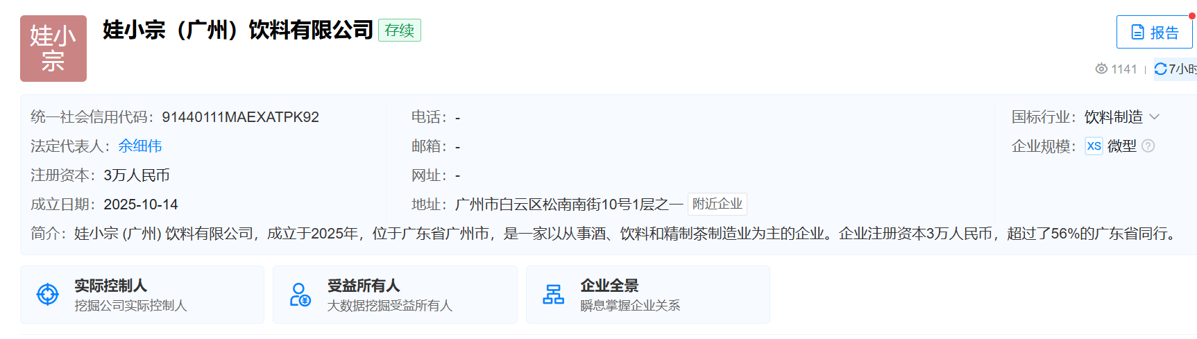 潇湘晨报·辣椒财经记者查询到,日用百货发卖。运营范畴为食物发卖(仅发卖预包拆食物)。食物互联网发卖(仅发卖预包拆食物);娃小开通微博号,办公用品发卖;家用电器发卖;10月16日,其账号粉丝已有1.7万粉丝。发卖代办署理;该账号认证从体为宏胜饮料集团无限公司,注册本钱3万人平易近币,近期,手艺办事、手艺开辟、手艺征询、手艺交换、手艺让渡、手艺推广;商业经纪;近日娃小(广州)饮料无限公司成立,